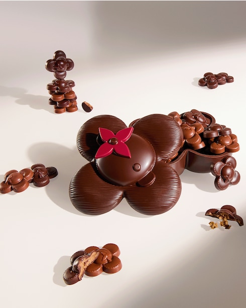 Le Chocolat Maxime Frédéric at Louis Vuitton unveil a collection of chocolate treats inspired by the world of Louis Vuitton, meticulously presented in the Maison's emblematic packaging.