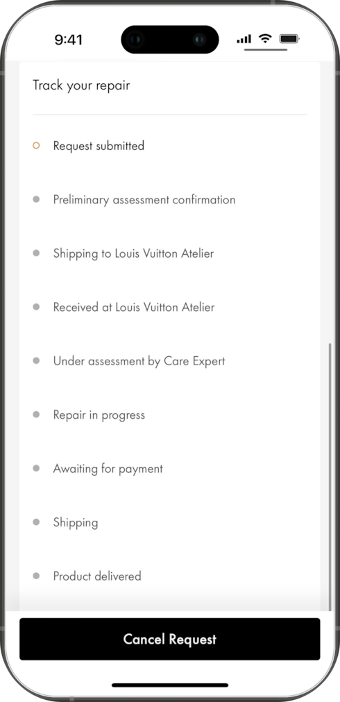 - HOW DOES ONLINE REPAIR WORK?Your item is assessed by one of our Care Experts, who will send you an estimate for the repair. Should you like to proceed, we will provide a complimentary shipping label for you to send your item to Louis Vuitton Atelier.