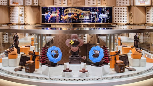 Le Chocolat Maxime Frédéric at Louis Vuitton on the fourth floor of Louis Vuitton 57th Street NYC store offers a delightful array of treats inspired by the Maison's signature codes, from classic bars to whimsical creations.
