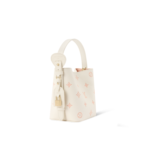 Defined by its playful Milk White and Peach Pink colour palette, this edition of the All In BB bag makes a subtle everyday statement. It is crafted from iconic Monogram Empreinte leather with light gold-colour hardware that lends a sleek finish. The decorative name tag and padlock are signatures of the House, paying tribute to archival Louis Vuitton luggage. It can be styled various ways and is sized to fit the essentials.