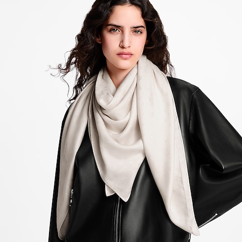 With its timeless style and superb craftsmanship, the All My LV Shawl emanates understated elegance. Jacquard-woven in a plush wool-silk blend, its pattern combines the iconic Monogram motifs with the letters of the House’s name for an original signature. This versatile shawl can be worn with an evening dress, as a scarf or even as a knotted top.