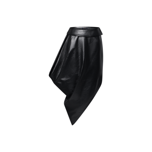 Informed by architectural innovation, this skirt from the runway collection is sleek and sculptural in polished full-grain lambskin leather draped in a structured, asymmetrical silhouette that falls to the ankle. A fold-over effect waistline and invisible side zip complete the clothing look with a clean finish, while a silk-blend lining elevates the comfort.