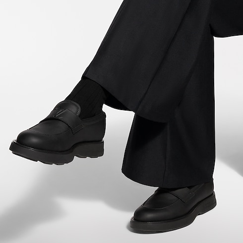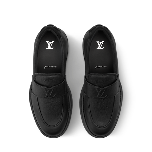 The Bastille Loafers come in Aerogram grained calf leather, an emblematic material of Louis Vuitton Leather Goods, characterised by its durability and matte finish. The straps on the uppers each bear the LV Initials signature, while the neoprene trims at the backs are embossed with the Damier pattern. A chunky yet lightweight rubber outsole finishes this design.