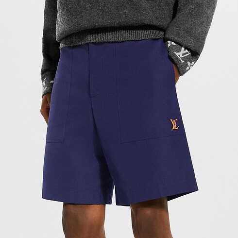 These timeless dark blue carpenter shorts are crafted from a blend of cotton, wool and silk. A VVN leather-inspired signature patch adorns the left of two roomy workwear pockets. A classic style that is easy to mix and match for summer, these shorts also make a smart clothing set paired with a matching jacket.
