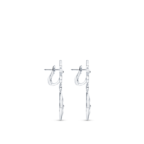 Meticulously crafted from 18-karat white gold and richly inlaid with glistening pavé diamonds, these Color Blossom earrings exalt the Monogram Flower, a motif created by Georges Vuitton in 1896. Dazzling and feminine, the jewelled drops flash their precious fire with each movement and gesture. These earrings are a brilliant addition to the most elegant silhouettes.