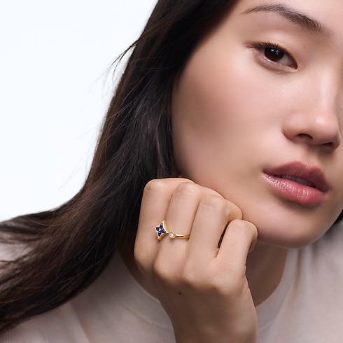 Color Blossom Mini Star Ring, Yellow Gold, Sodalite and Diamond