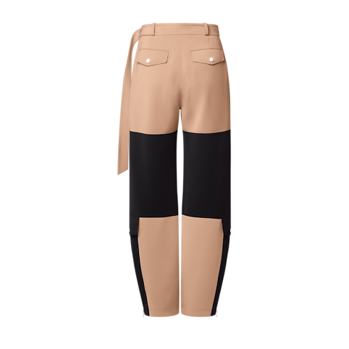 These cargo trousers have a fresh graphic look in colour-blocked technical jersey. They are cut in a wide-leg shape with pleats at the hips adding subtle volume to the legs. The waistband is trimmed with an integrated adjustable D-ring belt for a contemporary utility feel, which is underscored with multiple snap button pockets.