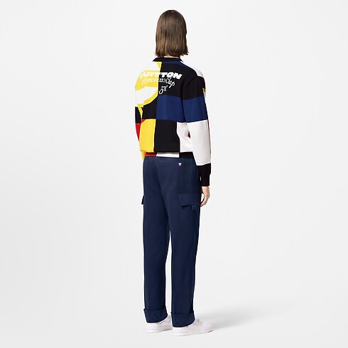 These timeless cargo trousers from the Louis Vuitton 37th America’s Cup Collection feature a discreet Damier on the side pockets and turn-ups. ‘Marque L.Vuitton déposée’ signatures grace both the Damier and the embroidered pocket tabs. An embroidered tricolour Gaston on a rear pocket adds a sporty final touch to this go-to summer clothing essential.