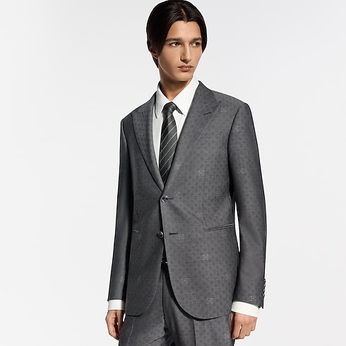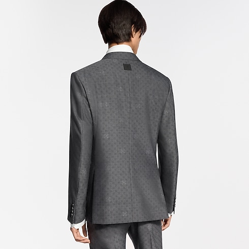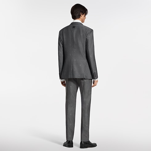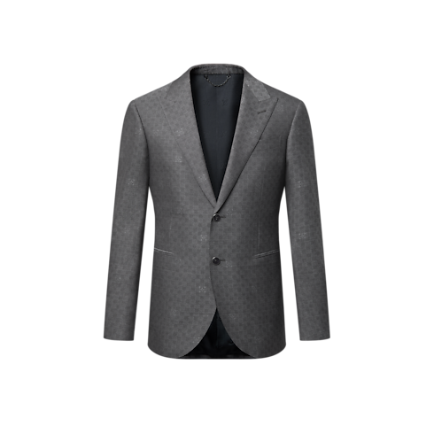 Elegantly tailored in a timeless dark grey, this single-breasted Pont Neuf jacket is ideal for formal business occasions. The fine wool features a sophisticated tone-on-tone mini Damier Seeds jacquard motif incorporating Monogram Flowers with a softly dappled effect. A peak lapel and piped pockets enhance the streamlined silhouette, which makes a chic suit when paired with matching trousers.