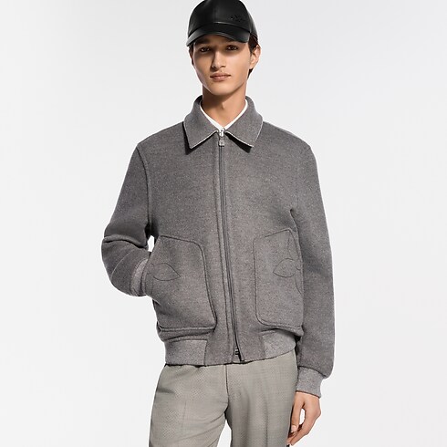 This elegant taupe reversible blouson has a softly rounded silhouette crafted from wool, cashmere and silk double-face fabric. The plain side is accented with a rhinestone signature on the chest and Monogram Flower embroidery on the pockets. A sophisticated jacquard Mini Flower Damier motif lends a graphic accent to the reverse. This versatile clothing piece lends a contemporary accent to a modern formal look.
