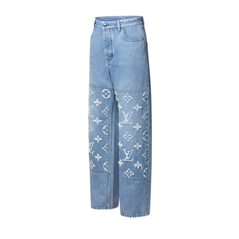 These jeans with an easy skate silhouette are elevated with creative details including Monogram signatures on the knee panels picked out with an edgy ripped treatment. Washed indigo denim enhances the casual vibe of this on-trend style, which can be paired with a matching jacket for a total look.
