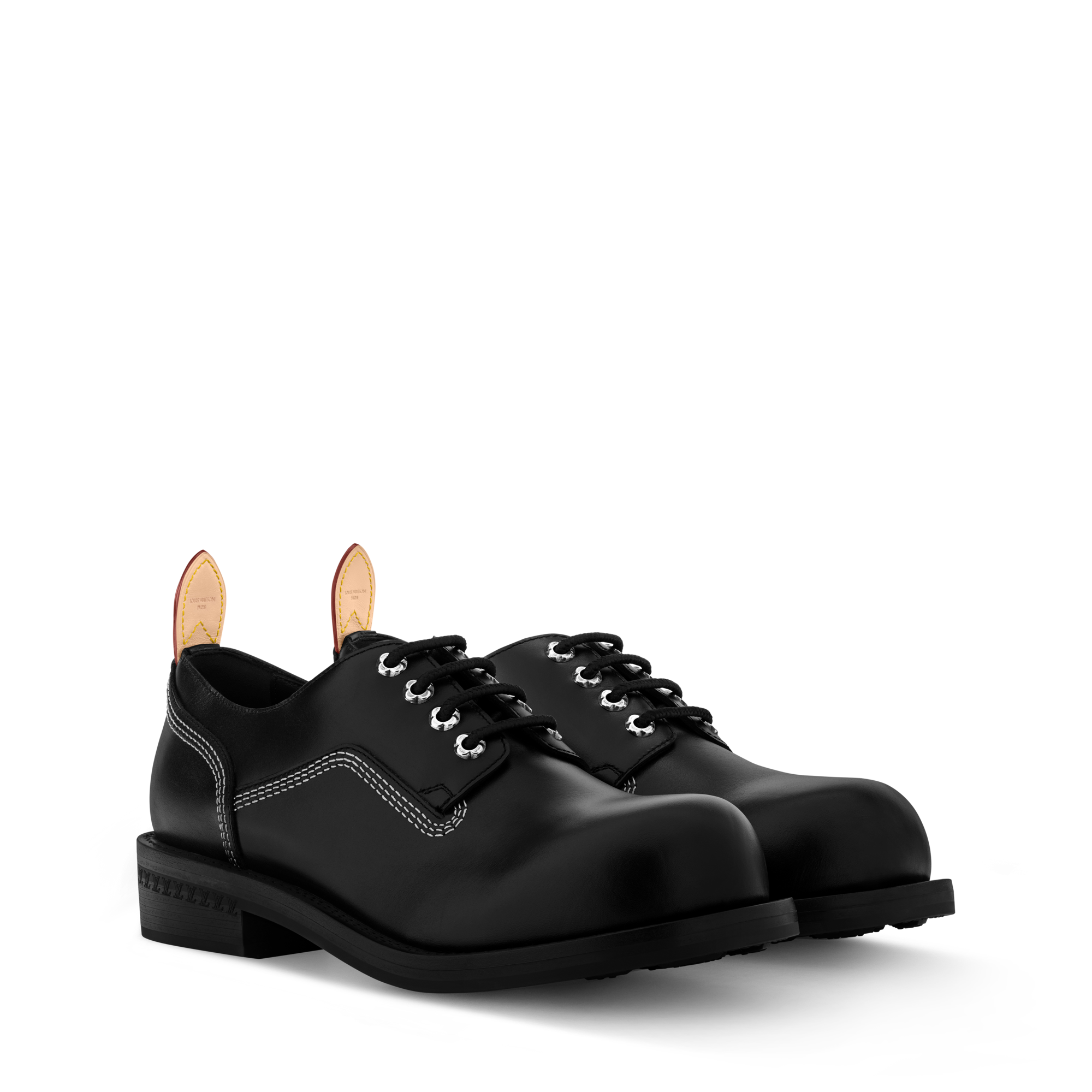 These Denim Skate Trousers from the Fall-Winter 2025 Show’s Pharrell and Nigo collaboration are printed with a graphic LV Scribble motif merging calligraphic traditions from Nigo’s native Japan with Western street art. The bold 'hand-painted' lettering incorporates House signatures in Japanese alongside references to Paris and Tokyo, bringing an arty, urban accent to casual looks. A matching jacket makes a runway look.