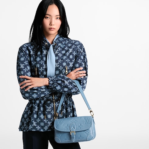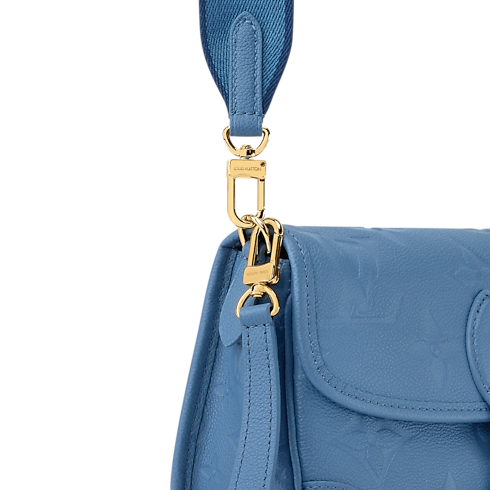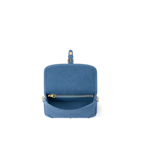 This sleek Diane bag has been updated for the season in a denim blue palette, which complements day and evening looks. It is crafted from signature Monogram Empreinte leather with a contrasting textile strap that can be removed if desired. The elegant design is adorned with gold-colour hardware and opens to reveal a zipped pocket to keep smaller items secure.