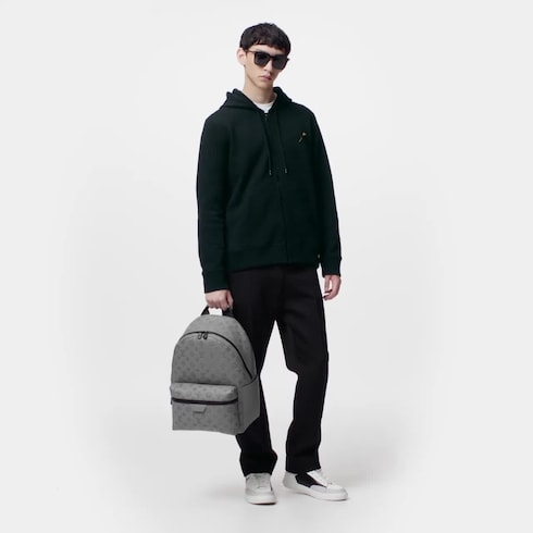Made from calf leather with an embossed Monogram pattern, the Discovery Backpack combines style, comfort and functionality. Its supple, body-friendly shape features three outside pockets for easy access to essentials and numerous inside pockets to keep things organised. The black-colour hardware completes the understated design.