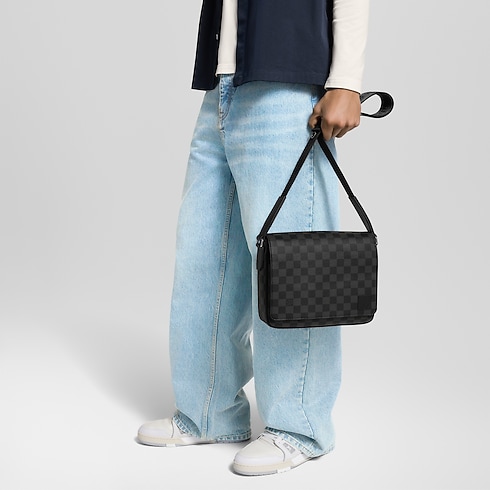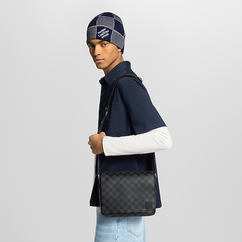 A little smaller and more rectangular than the previous version, the new District PM in Damier Graphite coated canvas has been revamped to emphasise the purity and proportions of this emblematic messenger bag. The outside zipped pocket and inside pockets keep things organised. The adjustable strap, signed 'Louis Vuitton', ensures carrying comfort.