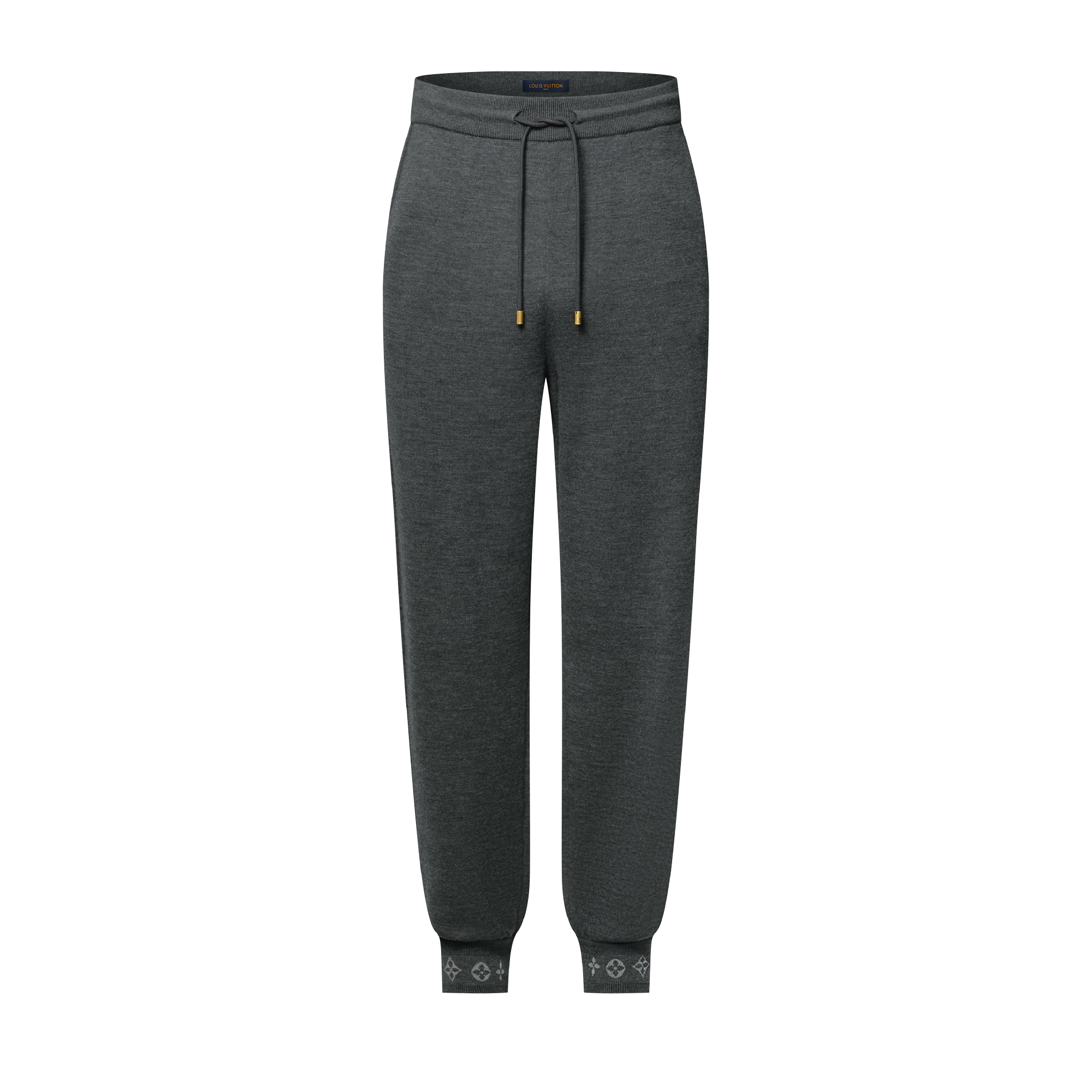 Combining comfort and elegance, these dark grey, organic wool trousers are crafted in a double-face knit with a soft cotton interior. Their minimalist silhouette, which is distinguished with jacquard Monogram signatures on the cuffs, makes a smart travel set when paired with a matching blouson.