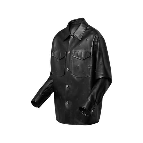 This supple leather overshirt from the Spring-Summer 2024 Show is elevated with a tonal embroidered all-over LV Blason, bringing exquisite detail to a classic silhouette. This discreetly chic piece is unlined, enhancing its elegant drape. It has a snap button closure and can be worn open or closed as a versatile timeless layer.