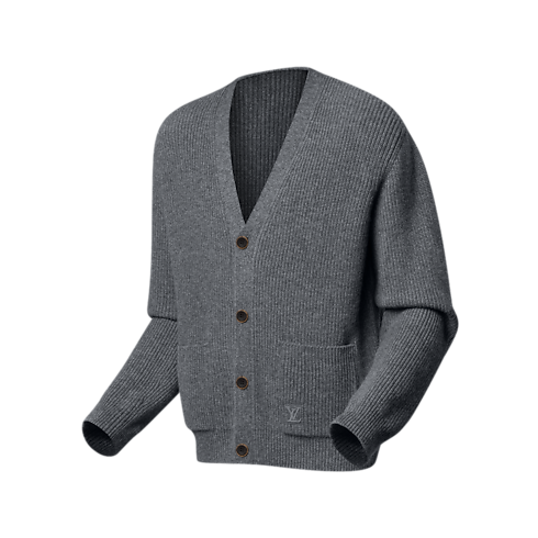 This elegant grey cashmere cardigan offers timeless luxury with a softly ribbed knit. A tone-on-tone embroidered LV discreetly signs the left pocket while black mother-of-pearl effect buttons in golden metal settings add a sophisticated accent. An effortless style for mixing and matching, this clothing piece provides a light layer of warmth across the seasons.