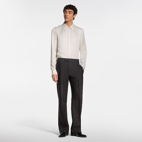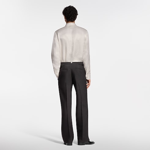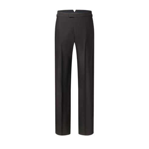 These black tuxedo trousers are impeccably elegant, tailored from draped wool and silk crepe with satin bands down the outside of each leg. An adjustable waistband ensures a sleek silhouette with Monogram Flower rivets adding discreet signatures to the tabs. A matching tuxedo jacket and shirt make a chic evening set.