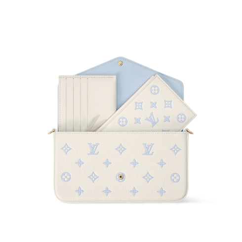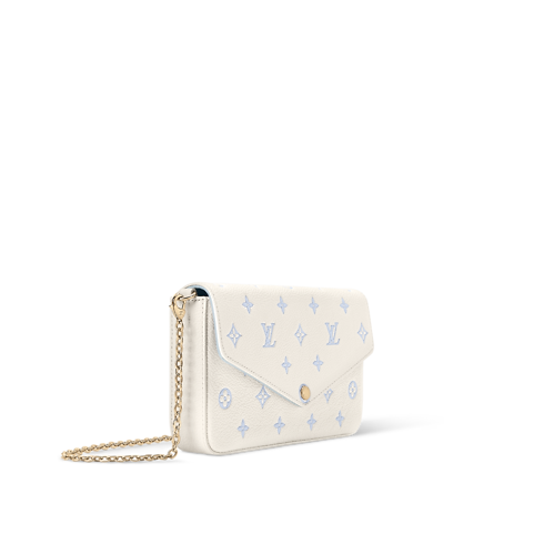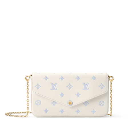 Reimagined in milk white and blue, this two-tone edition of the Félicie Pochette bag belongs to the Sweet Escape Collection. It is crafted from signature Monogram Empreinte leather and features two removable pockets, one of which is zipped and the other features eight card slots. The elegant gold-colour chain offers multiple carry options.