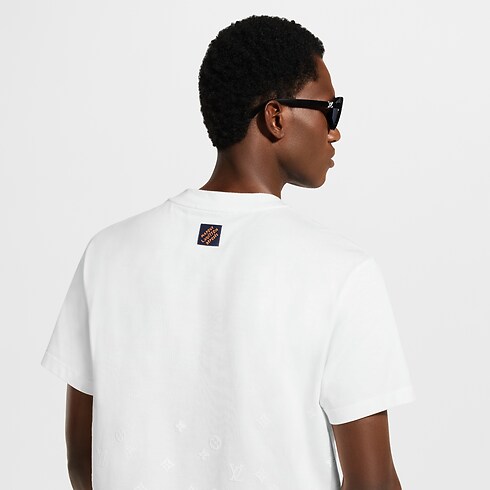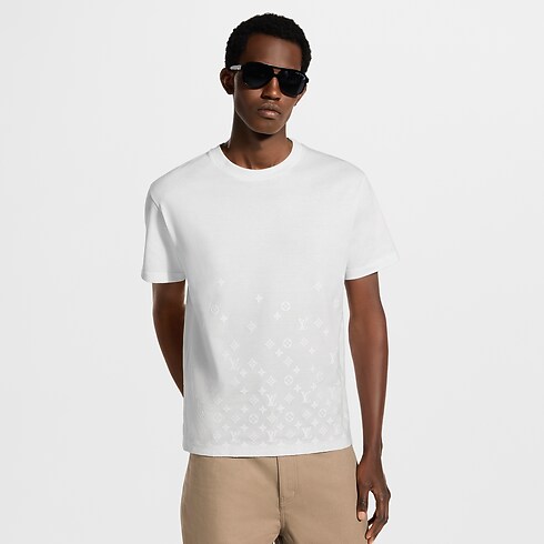 Crafted in a light organic cotton jersey, this classic T-shirt is elevated with a softly textured flock Monogram Gradient motif. It is executed in a discreet tone-on-tone treatment with a signature that rises and disperses from the hem. This elegant clothing piece in a timeless milk white brings a subtle signature accent to casual and everyday looks.