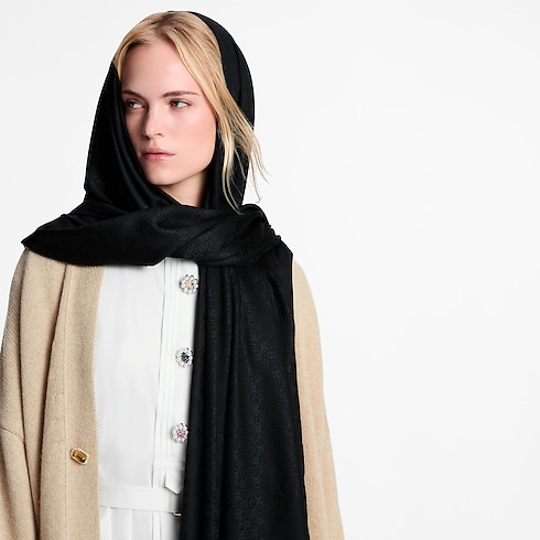 Crafted in a rich silk-wool blend, the Frosty Monogram Wrap conveys an aura of understated opulence. Its sophisticated jacquard pattern features a floral variation on the iconic Monogram motif, with a classic Monogram border for an unmistakable signature. Worn over a long gown or a more casual outfit, this elegant, easy-to-wear wrap is perfect for festive evenings.