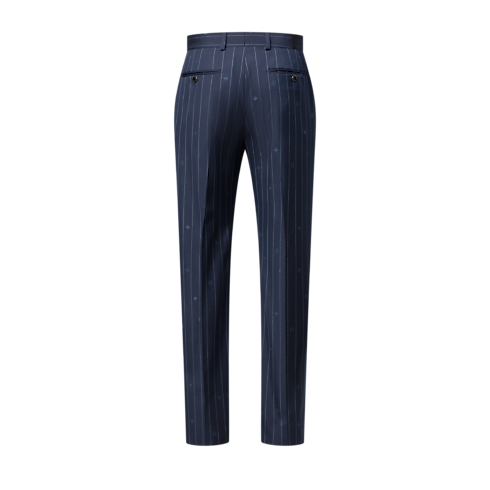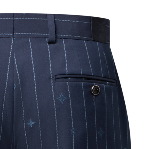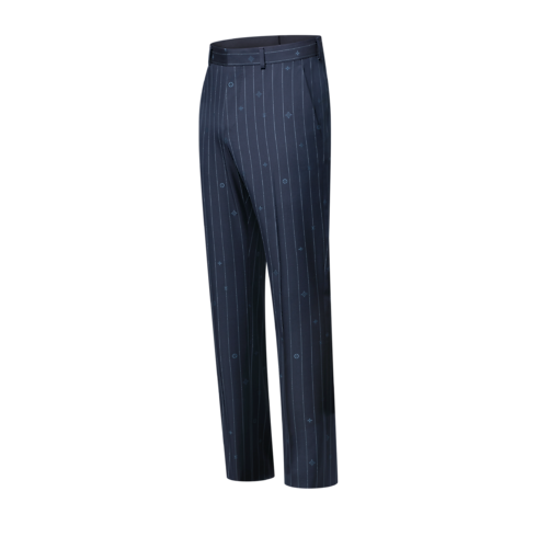 These navy blue cigarette trousers play with the codes of tailoring by reinventing the classic pinstripe motif, which is reconfigured here as a tonal Monogram Pinstripes jacquard with Monogram elements dispersed amongst the stripes. Crafted from fine wool, these flattering trousers make a sophisticated business suit paired with a matching jacket.
