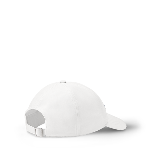 The bright white Golf Cap freshens up a day on the green. The signature, 'Louis Vuitton Since 1854,' is embroidered in an elegant script alongside triangle golf flags on the front panel in an intense blue. The back strap is equipped with a square buckle engraved with LOUIS VUITTON for customisable comfort and elegance.