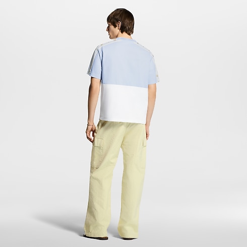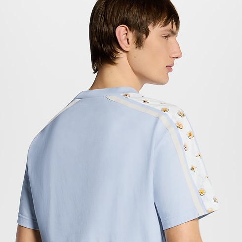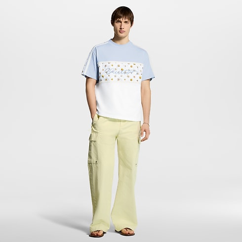 Playful spring florals adorn this colour-blocked pale blue and white organic cotton T-shirt. A Blooming Monogram motif adorns sporty inserts across the chest and on the sleeves, while an embroidered cursive Vuitton signature in lustrous yarn signs the front. Easy to style with this collection’s pastel tones, this T-shirt lends a graphic accent to casual clothing looks.