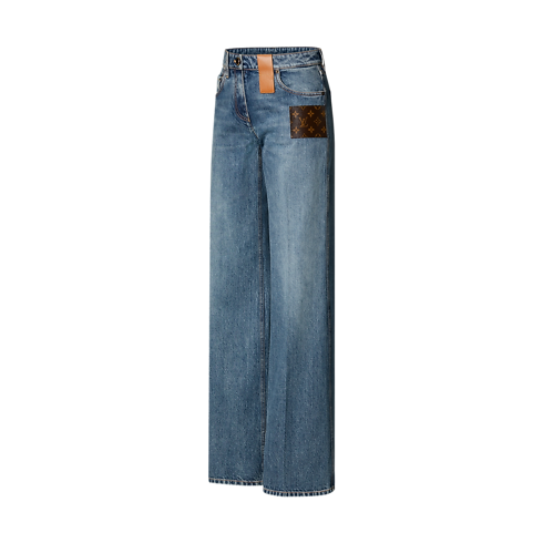 A signature spin on an enduring staple, these jeans flatter the figure in a high-waisted bootcut that elongates the silhouette, crafted from thick organic denim in a timeless shade for casual everyday styling. A jewel button adds a chic detail, while leather and Monogram patches complete the clothing look with a contemporary House touch.