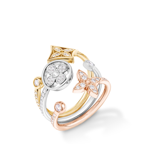 Idylle Blossom Paved Ring, 3 Golds and Diamonds