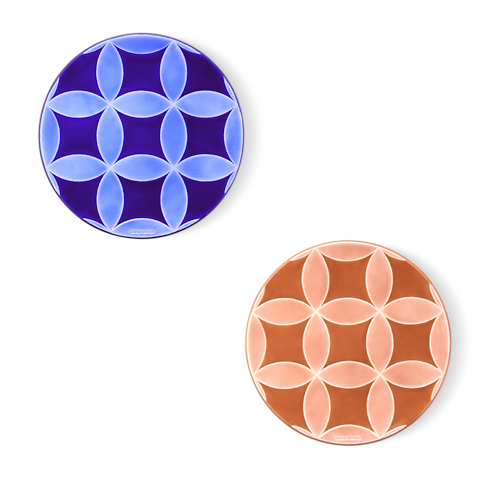 To create the Inti Centrepiece, the celebrated Argentinian designer Cristián Mohaded drew inspiration from a historic Louis Vuitton icon. Hand-painted on a fine ceramic base, its eye-catching graphic pattern features the emblematic Monogram Flower multiplied within a medallion. A sophisticated cloisonné technique makes it possible to juxtapose contrasting shades of orange and pink enamel, conveying an impression of depth. This delicately crafted centrepiece brings a vibrant touch of colour to any table.