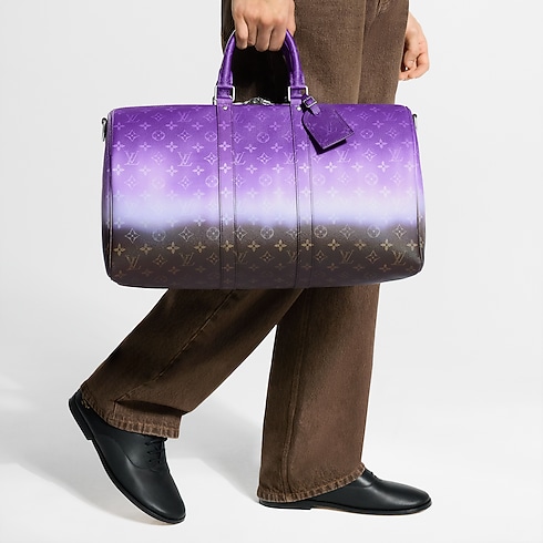 Taking the traditional Monogram Ebene to the next level, Monogram Pigment coated canvas brings bold colour to this Keepall Bandoulière 45 bag. The gradient colour saturates the top and fades toward the base. Trimmed in cowhide leather, the top handles and removable, adjustable strap are dyed to match the most vibrant part of the design.