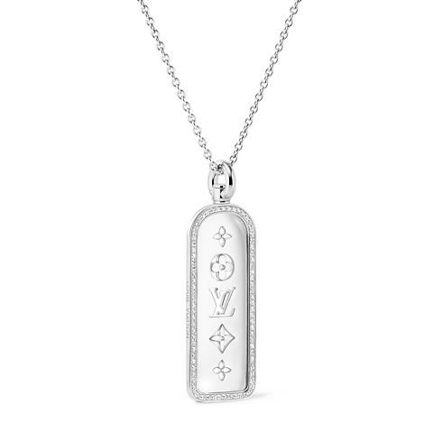 Fine jewellery orders may take up to 2 weeks for delivery due to UK hallmarking regulations. Inspired by the unique, creative and playful personality of Louis Vuitton’s grandson Gaston-Louis Vuitton, this tag pendant combines forward-looking style with refined heritage touches. Recalling his love for family, its design features an innovative vertical presentation of the emblematic Monogram Flowers and LV Initials finely engraved on hand-polished 18-karat white gold, enhanced with sparkling diamonds. This timeless jewel can be worn alone or paired with other creations from the Les Gastons Vuitton Collection.