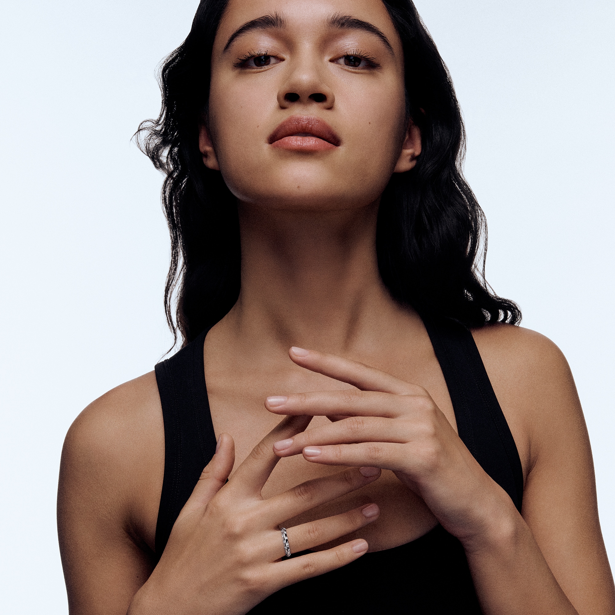 The graphic genderless style of Le Damier de Louis Vuitton ring makes it a unique combination of contemporary artistry and classic heritage. Delicately crafted in hand-polished 18-carat white gold set with radiant diamonds, its design evokes the House's iconic Damier motif, a timeless symbol of infinity created by Louis and Georges-Louis Vuitton in 1888. Designed to be combined with other jewels, this exceptional ring is meant to be worn every day and never taken off, becoming an authentic second skin.