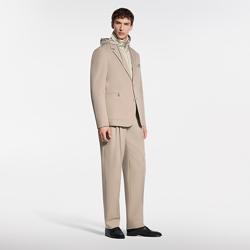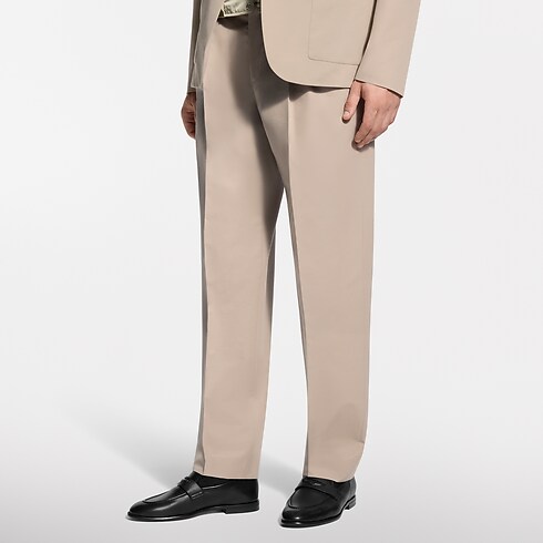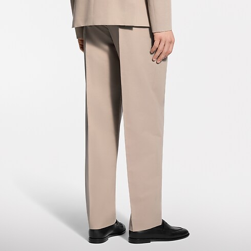 These beige wool-cotton twill trousers are a timeless wardrobe essential. They have an elegant double-pleated front and are signed with tone-on-tone embroidery on the right pocket and a woven LV label on the rear waistband. Pair with a matching jacket for a modern twist on the suit or style with separates for a preppy look.