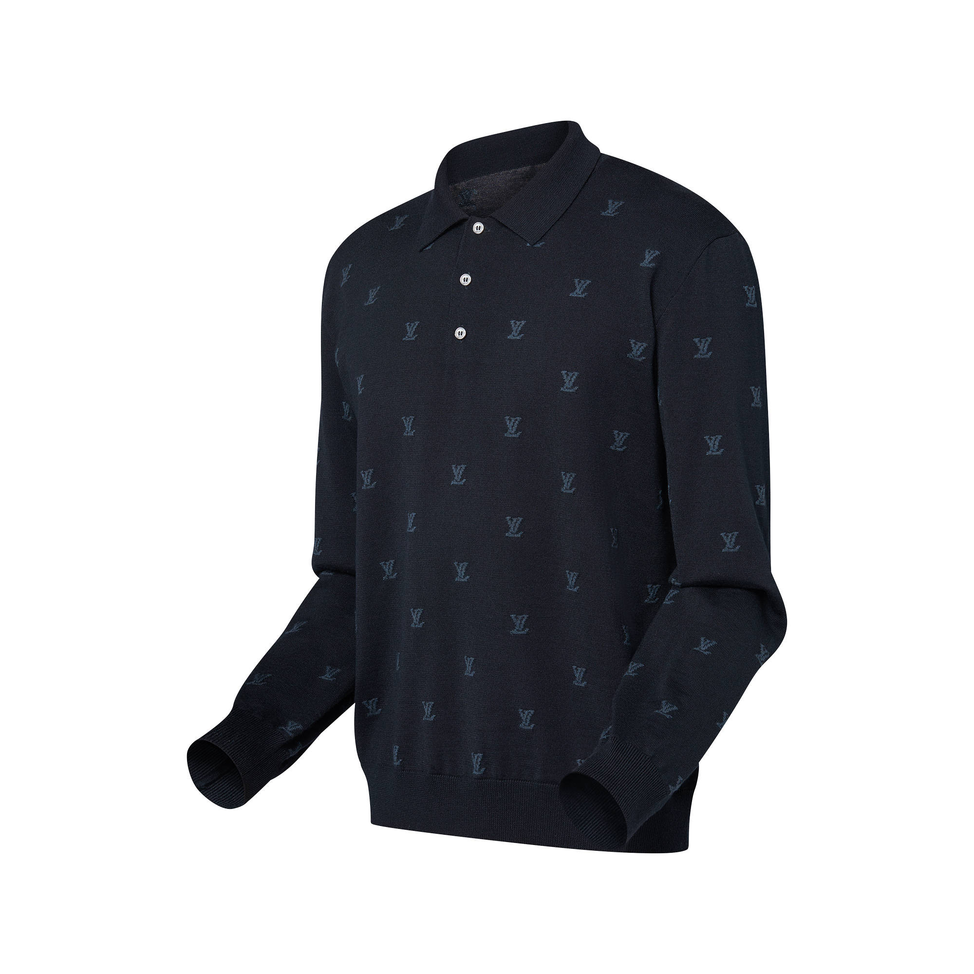 This elegant long-sleeved polo shirt is a versatile wardrobe staple. The navy blue silhouette is embellished with a tonal LV Blason motif that has been incorporated into the knit with a sophisticated intarsia technique. Crafted from a luxurious blend of wool, silk and cashmere, this exquisitely soft and breathable piece elevates both casual and timeless looks.