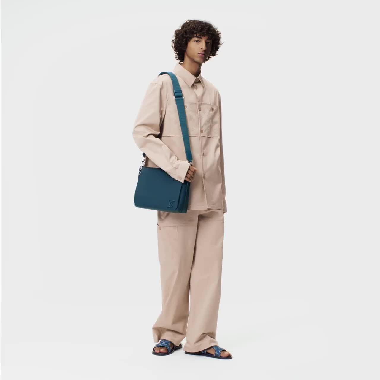 With its minimalist design, unified colourway and cut corners on the front flap, this Takeoff Messenger bag is clearly part of the LV Aerogram Collection. Made from grained leather, it features tone-on-tone LV Initials in metal on the front. An adjustable and removable strap, with 'Louis Vuitton' woven into the textile, enables shoulder and cross-body wear.