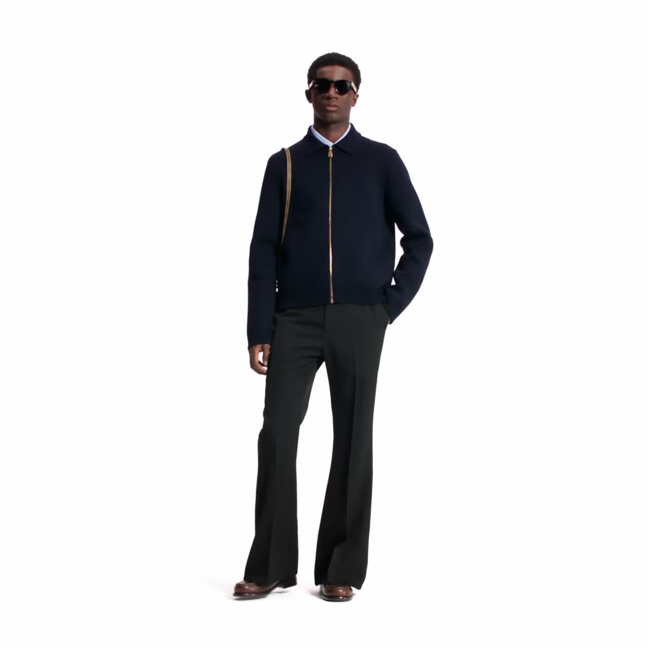 This zipped knitted wool blouson is elevated with an elegant embossed LV Blason pattern all over. The smart and contemporary style has discreet side pockets on the seams for an uncluttered silhouette. Easy to mix and match in a deep night blue, this is a light and versatile layer for all seasons.