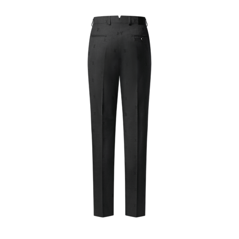 This dark grey pure wool suit is a sleek and timeless option for the office. A discreet jacquard LV Blason motif ennobles this clothing piece all over, with the signature repeated on the lining. The sharp silhouette features a single-breasted Pont Neuf jacket and elegant cigarette fit trousers. Finishing touches include an LV-embroidered tab on the right hip of the trousers and signature labels.