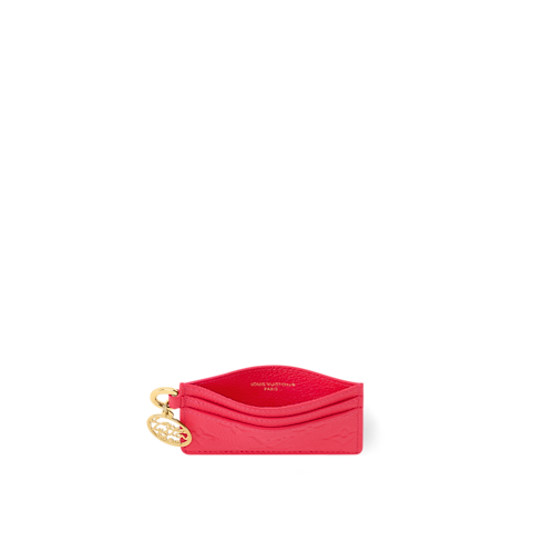 This Rainbow edition of the LV Charms Card Holder is reimagined in a vibrant Strawberry Pink shade that adds a pop of colour to any look. It is crafted from signature Monogram Empreinte leather and is adorned with a gold-colour LV Script charm on the zip pull. The compact design is fitted with five slots to keep cards secure.