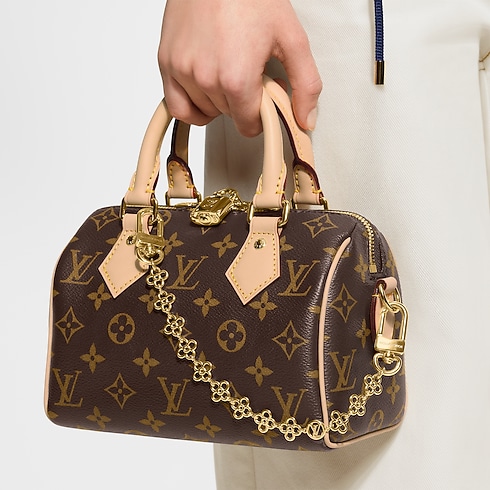 The elegant LV Charms bag chain offers an original combination of heritage inspirations and creative versatility. Modelled after the House’s iconic Monogram emblems, the openwork links of its gold-coloured chain were designed to be personalised with any combination of the interchangeable charms from the collection. Perfect for enhancing a bag with a playful touch of on-trend flair.