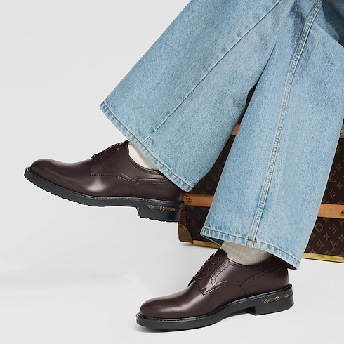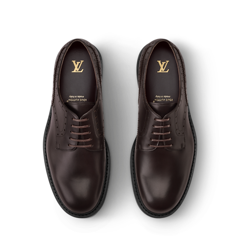 Inspired by the classic look of British city gentlemen, the LV City Derbies in calf leather bring a modern twist to timeless business shoes. The uppers are decorated with brogue-style perforations in the shape of Monogram Flowers, while the heels feature a distinctive detail in Monogram canvas. This model is finished with a robust rubber outsole.