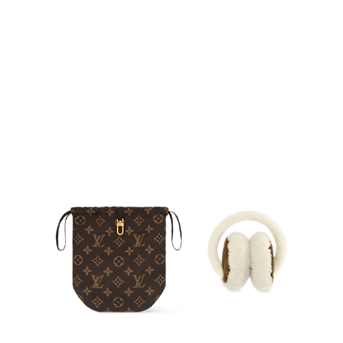 Crafted in plush, fluffy shearling, the LV Cloud earmuffs are the perfect way to stay warm with style all winter long. Their sophisticated design features the LV Initials on one side and a Monogram Flower on the other for an unmistakable House signature. They fold up to fit in a special Monogram pouch, ideal for travel.