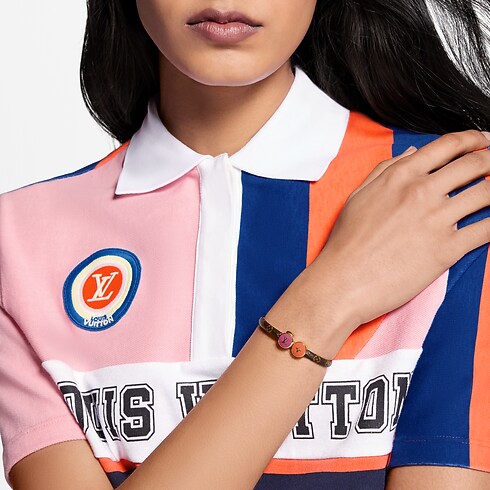 The casual-chic LV Confetti Bracelet offers an eye-catching variation on the House’s beloved icons. Its Monogram canvas strap features a colourful metal and enamel fastening in the form of two confetti-like discs adorned with a Monogram Flower and the emblematic LV Initials. This fun, easy-to-wear bracelet adds a playful creative accent to any look.