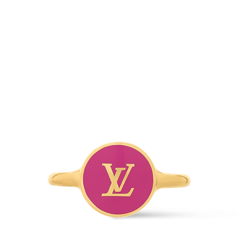 Crafted in lustrous gold-toned metal, the LV Confetti Ring pays homage to the iconic Monogram signature in an upbeat, festive spirit. Its whimsical design features a disc of brightly coloured enamel adorned with a delicate Monogram motif. Worn alone or stacked, this eye-catching ring adds a playful House touch to any look.