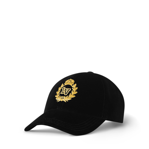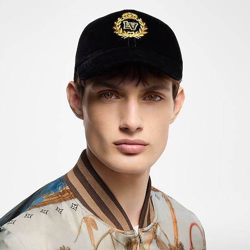 Sumptuous in texture and appearance, the LV Crest Velvet Cap is regal and practical. In the centre is the House coat of arms, embroidered in gold against the black velvet. The colour combination and hat style make this a versatile piece that lends itself to a range of ensembles.