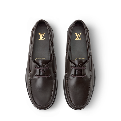 Inspired by the relaxed ambiance of the French Riviera, the LV Croisette Boat Shoes are a casual-chic style in smooth calf leather. The uppers are complemented by refined details, including Monogram Flower-shaped eyelets and a stitched half Monogram Flower at the back. The rubber outsoles feature the LV Initials and Damier-patterned treads.