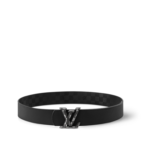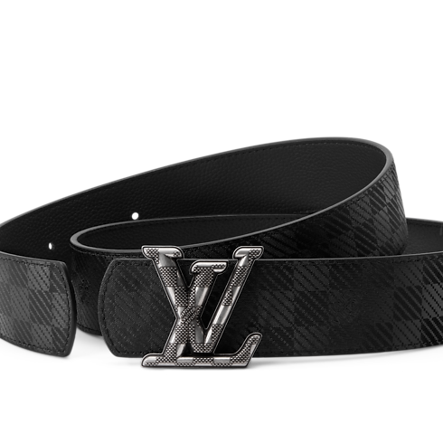 The all-black LV Dimension Damier 40mm Reversible Belt is a blend of attitude and elegance. The buckle, a contemporary interpretation of the House Initials, is interpreted in the checkered print, which creates a dynamic combination with both the matching Damier canvas side and solid leather reverse.