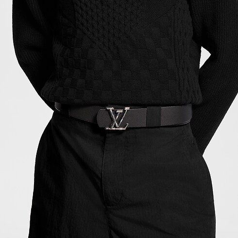 The all-black LV Dimension Damier 40mm Reversible Belt is a blend of attitude and elegance. The buckle, a contemporary interpretation of the House Initials, is interpreted in the checkered print, which creates a dynamic combination with both the matching Damier canvas side and solid leather reverse.